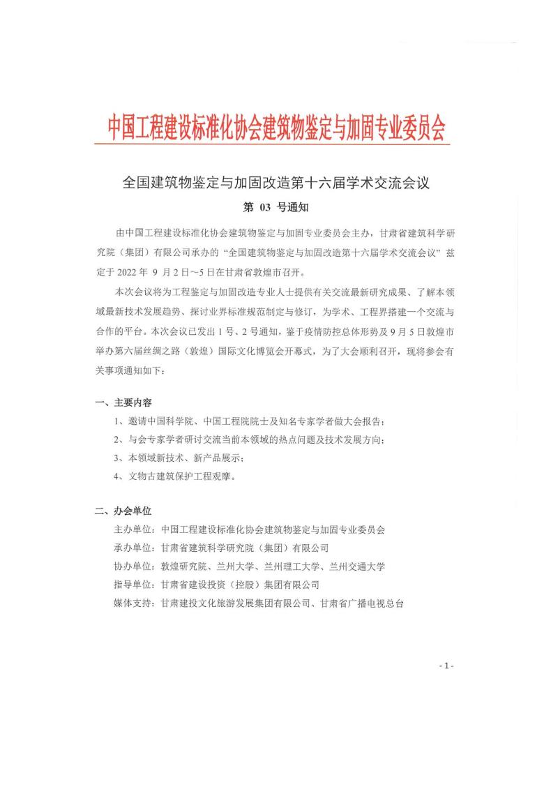 全国建筑物鉴定与加固改造第十六届学术交流会 03号通知